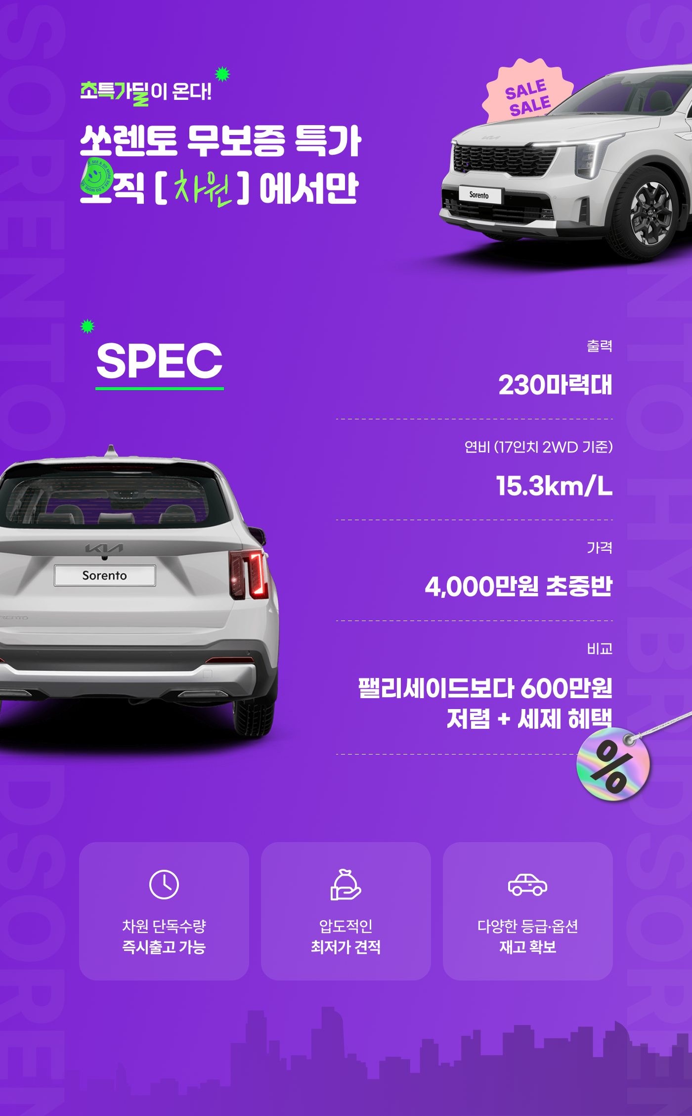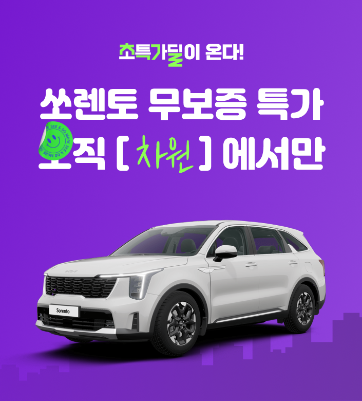 차원 인기SUV 특집 1탄 쏘렌토 무보증 특가!